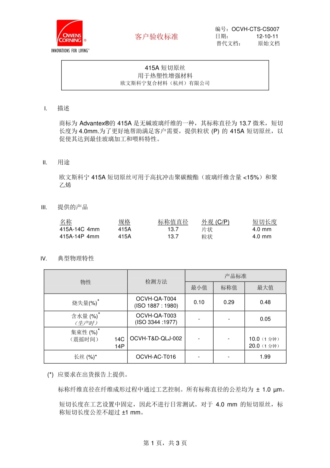 歐文斯科寧/研磨纖維/磨碎纖維/玻…